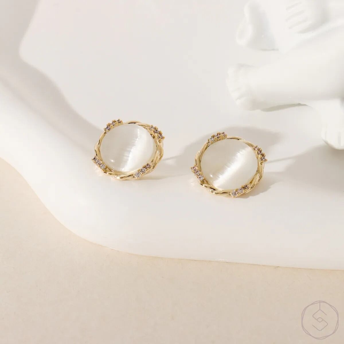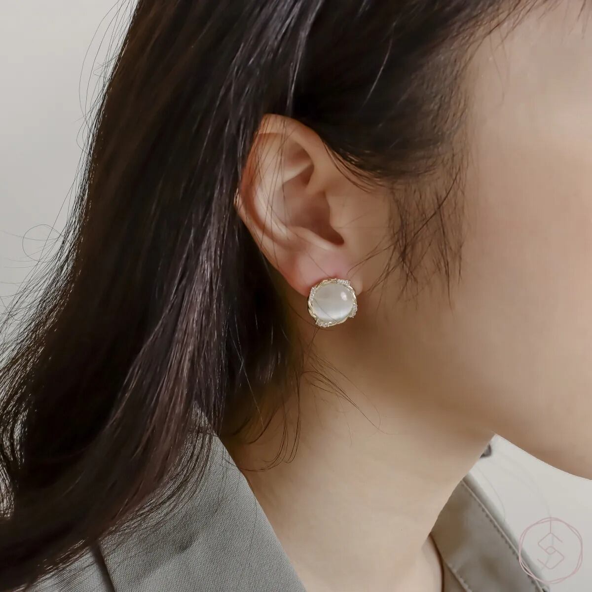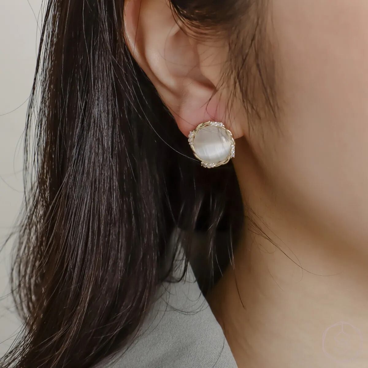 光を受けてほのかに変化する表情は、見るたびに異なる印象を生み出し、耳元に静かな存在感を添えます。主張しすぎず、それでいて印象に残るデザインです。