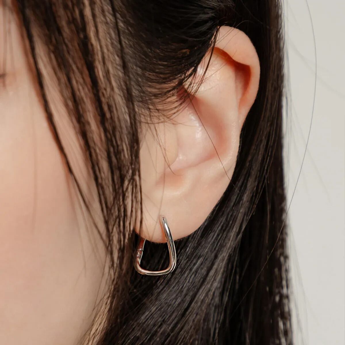 動くたびに光を受けて細やかにきらめき、耳元に洗練された印象を添えます。無駄を削ぎ落としたフォルムが、凛とした存在感を引き立てます。