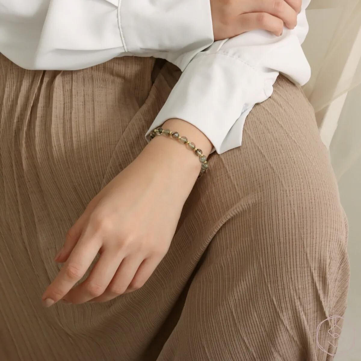 動くたびにさりげなく光を受け、やわらかなきらめきが手元に穏やかな表情を添えます。可憐でありながらも素朴な魅力を感じさせるデザインが、やさしい印象を引き立てます。