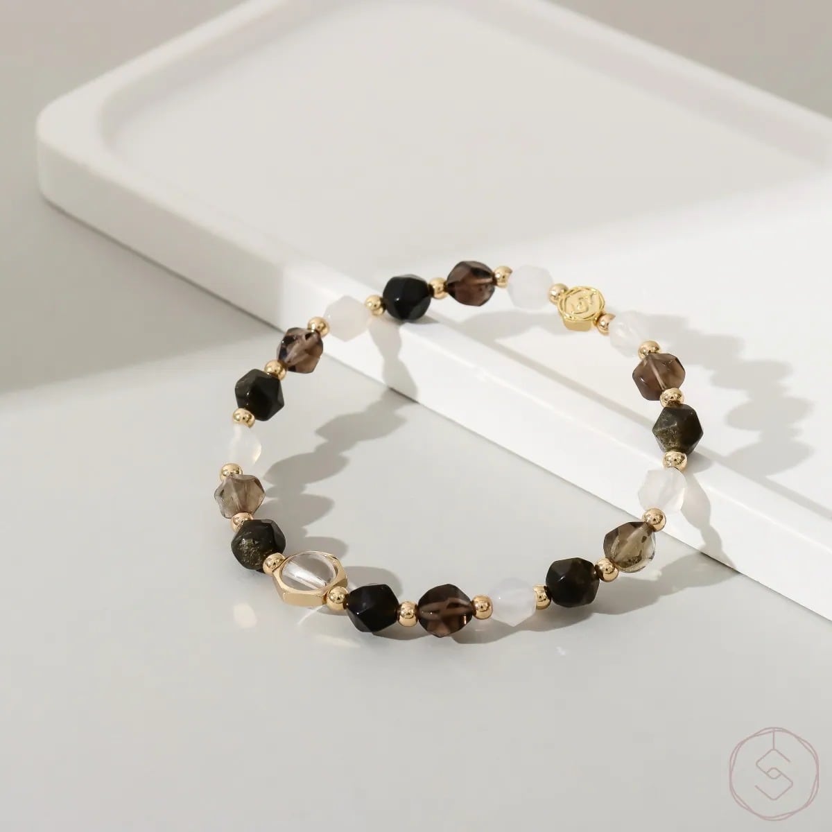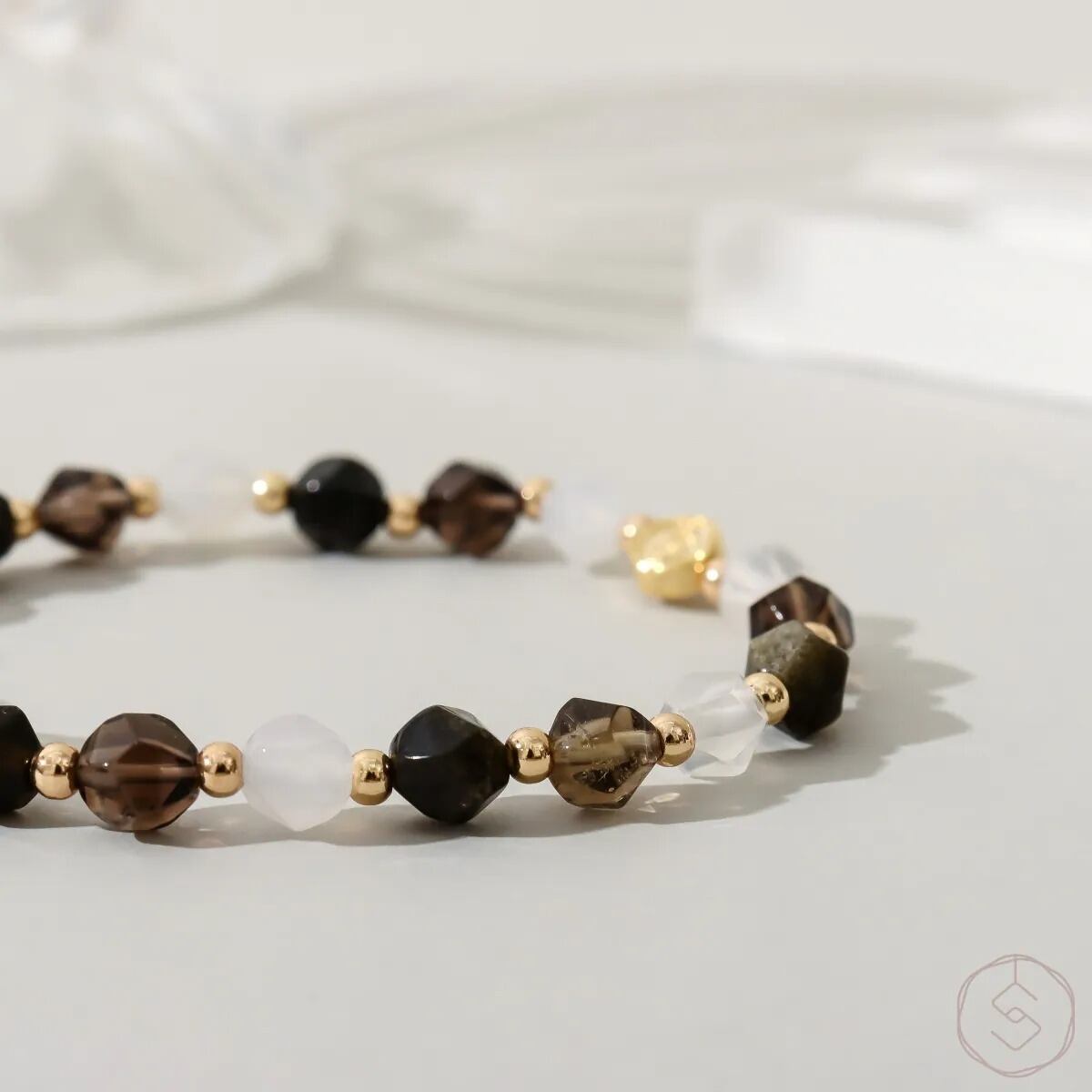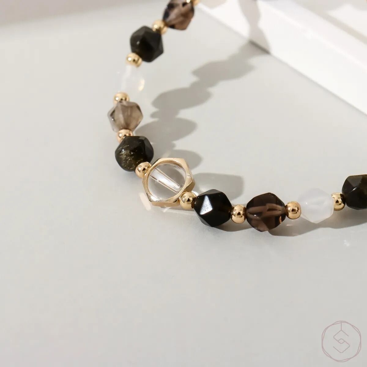 童心のままに|ゴールドオブシディアン スモーキークォーツ ホワイトアゲート ホワイトクォーツ|天然石ブレスレット