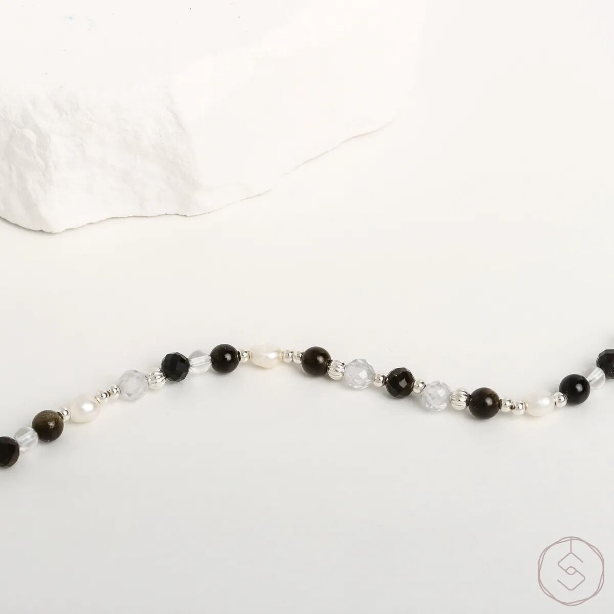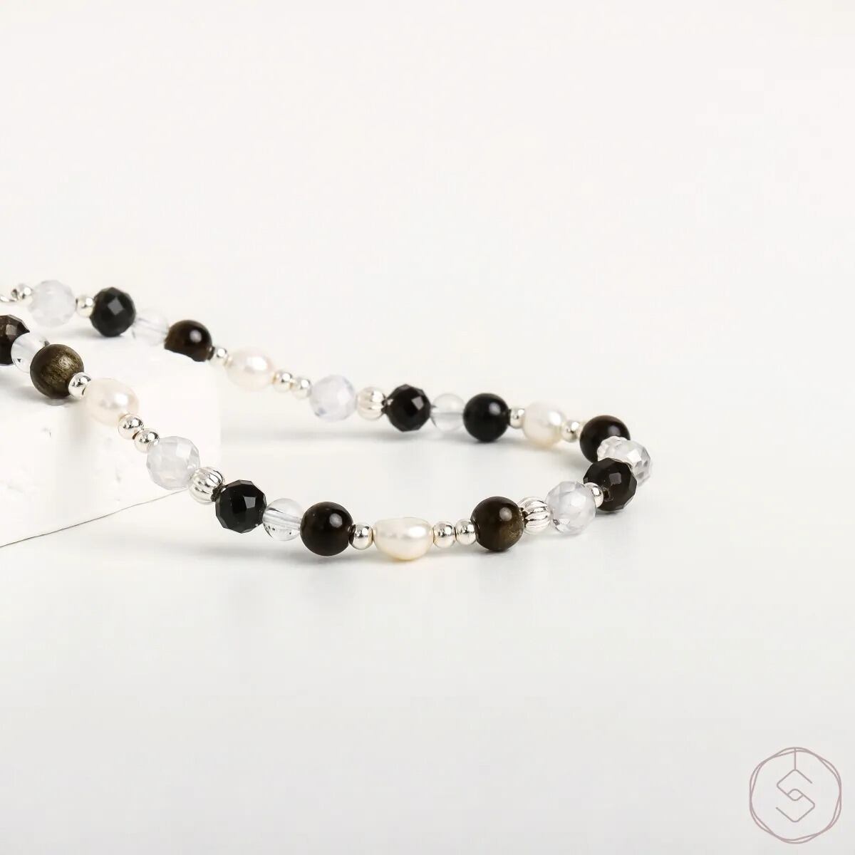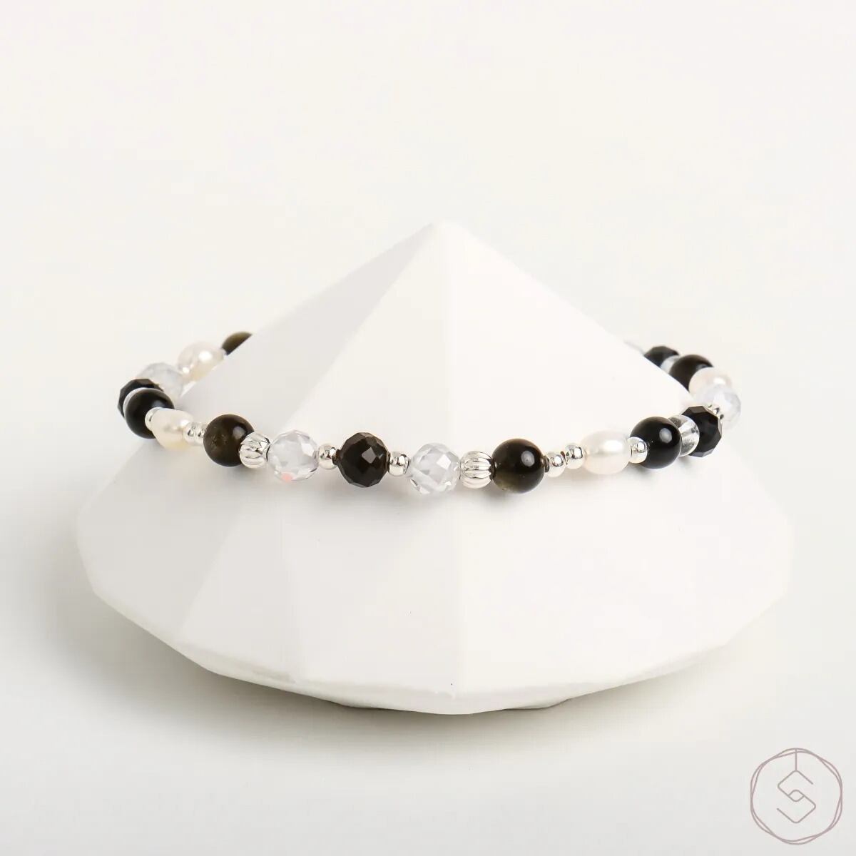 はじまりの光|ゴールドオブシディアン ホワイトクォーツ パール|S925シルバー|天然石ブレスレット