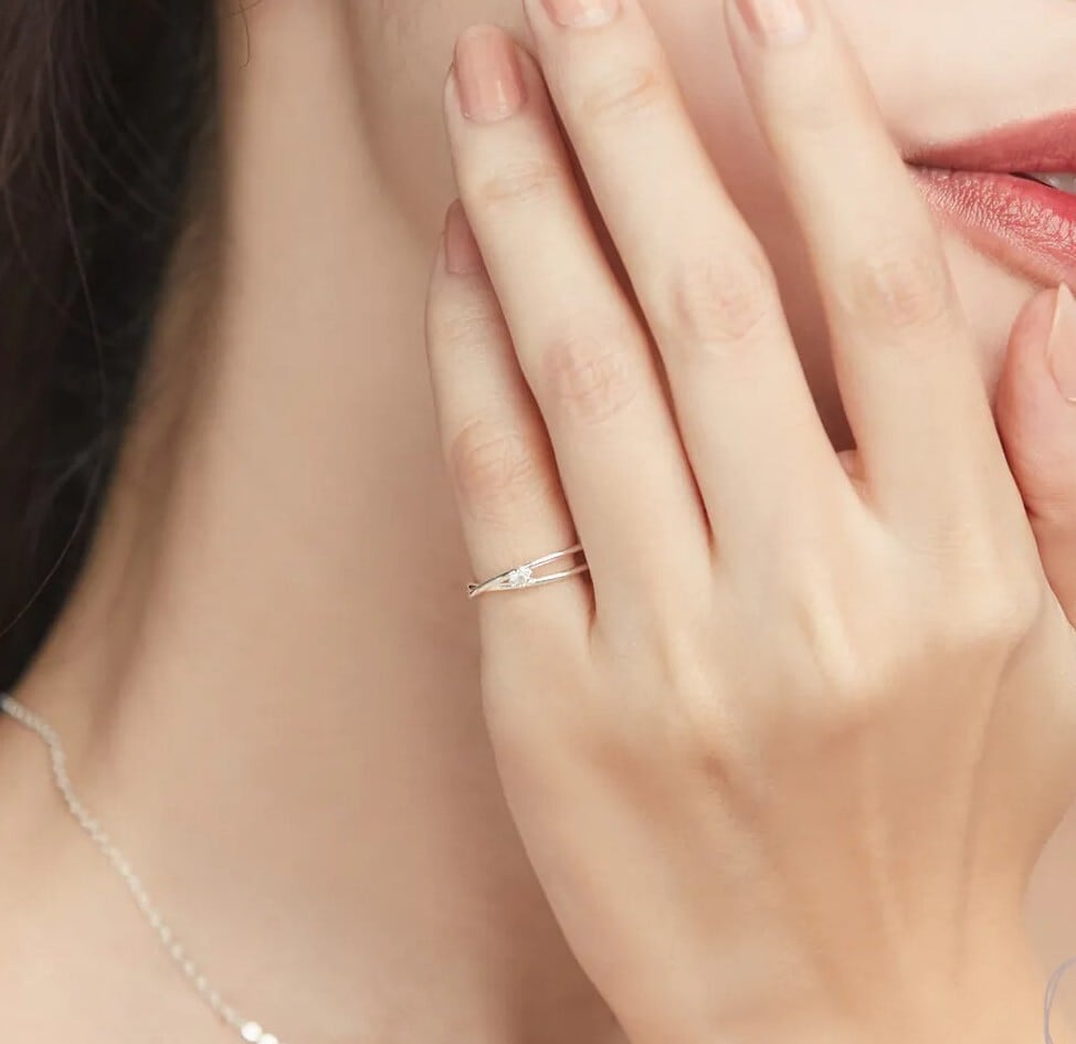 光を受けて繊細にきらめくラインが、指先に印象的な存在感を添え、見る角度によって異なる表情を映し出します。華やかさと落ち着きが調和したデザインです。