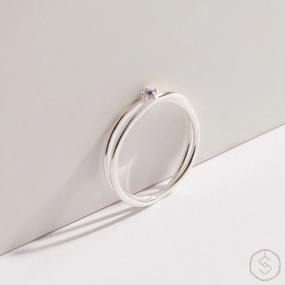 女神|ラブラドライト|S925シルバー|ダブルレイヤーシングルストーンリング