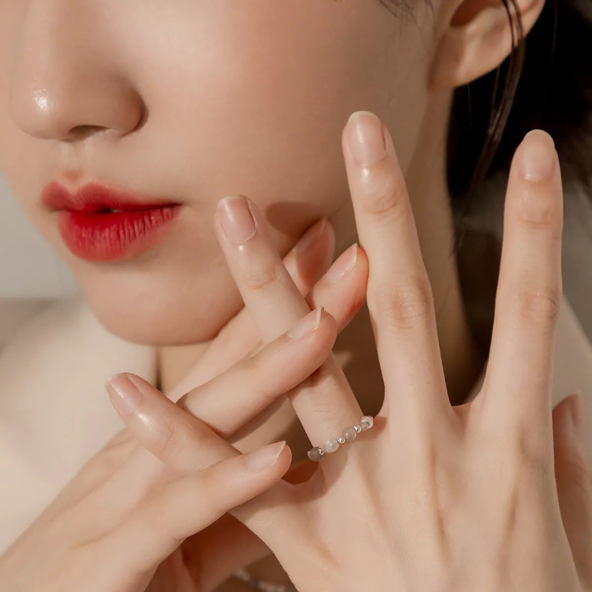 光を受けて印象を変えるフォルムが、指先に明るさと奥行きを添え、見るたびに新たな表情を映し出します。印象的でありながらも洗練された佇まいです。